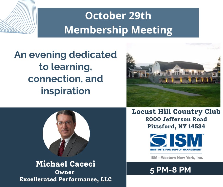 We’re excited to welcome Michael Caceci, founder and owner of Excellerated Performance, LLC, as our featured speaker at the October Membership Dinner Meeting — an evening dedicated to learning, connection, and inspiration.